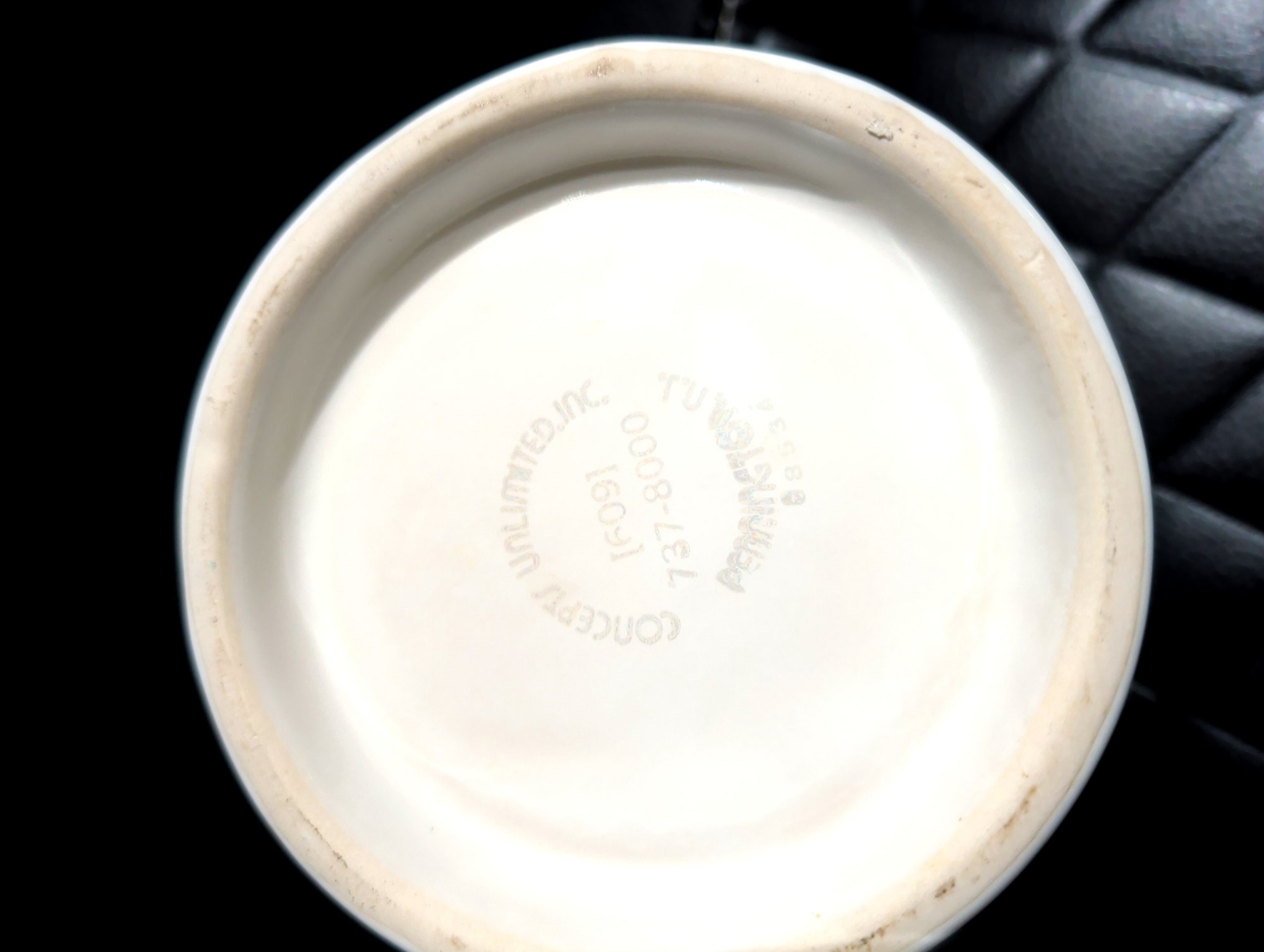 This is a vintage Miller Beer stein featuring the Far West Racing Association logo. It is made of ceramic with gold trim. The bottom is marked “Concept Unlimited Inc.” and “Tursso Pennsauken NJ”.